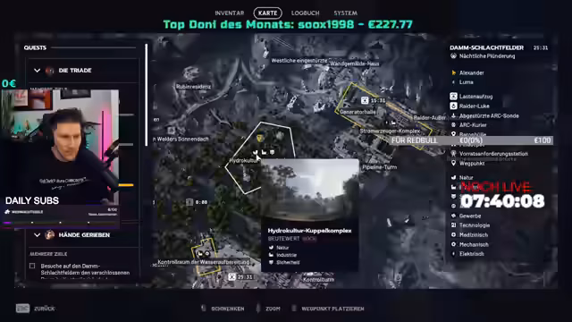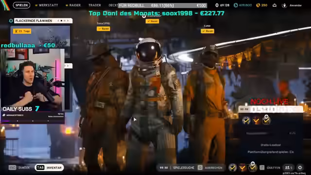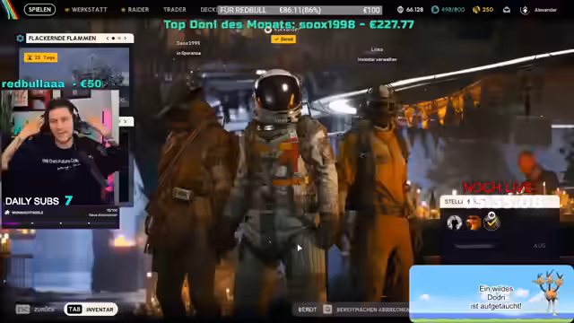 13:19:42Es folgen große Donationen mit 25€ und 50€ von Red Bull Ultra und einem unbekannten Unterstützer, was zu Dankesbekundungen und Erwähnungen von Big Support/Retalk führt. Gesundheitliche Warnungen vor Energy-Drinks nach Herzbeschwerden werden mit dem Hinweis auf Arztbesuche verknüpft. Der Streamer plant den Übergang zum Stellar-Modus mit Freeloadout für maximale Action, während er gleichzeitig die nächtliche Plünderung vorbereitet. Abschließend wird auf die Ähnlichkeit der Roboter mit Star Wars-Episoden hingewiesen und die letzte Chance für den Partner genutzt, vor dem Modus-Wechsel noch Beute zu sammeln.