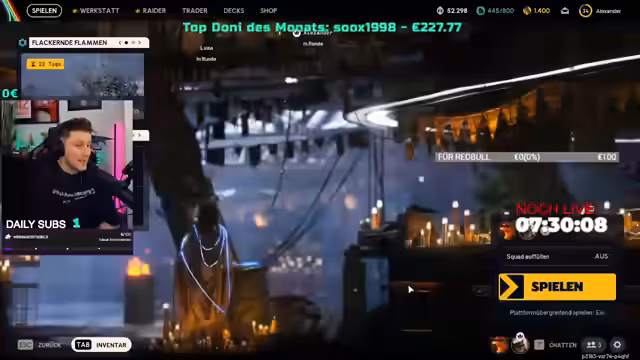 18:15:39Der Livestream beginnt mit einem intensiven Opening-Song, der als Banger beschrieben wird. Der Streamer äußert Begeisterung für die musikalische Untermalung und deutet an, dass später ein spezifischer Song (Pummelhoff) folgen wird. Er springt dann direkt in eine kritische Auseinandersetzung mit Food-Brands in Düsseldorf, insbesondere mit einem Dönerhaus, dessen Name und Design offensichtlich von Serien wie Squid Game inspiriert sind. Dies löst eine Diskussion über uninspirierte Marketingstrategien und mangelnde Originalität aus. Der Streamer kritisiert die einfallslose Namensgebung ("Döner Game", "Game of Döner") und vergleicht es mit geistigem Diebstahl, was eine lebhafte Reaktion des Chats provoziert.