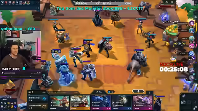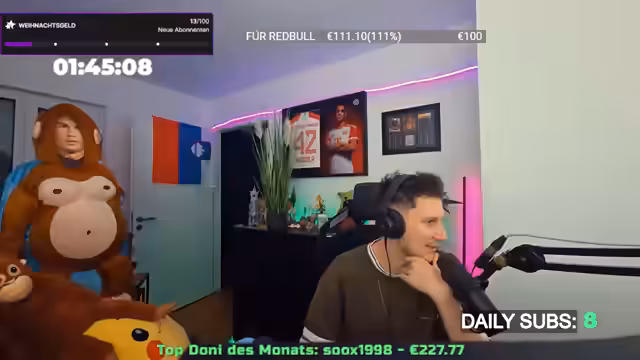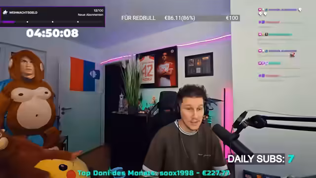 19:52:34Der Streamer reflektiert über den Verlauf des 12-stündigen Streams. Er erwähnt, dass das ursprüngliche Ziel erreicht wurde, obwohl Rabatte für die Dauer nicht ganz eingehalten werden konnten. Persönlich äußert er sich über die positive Wirkung des Streams, da er gestrige Frustrationen aus dem ProStym-Bereich ausgleichen konnte. Es folgen Gespräche über Arbeitszeiten im Einzelhandel, Weihnachtsurlaub und gesundheitliche Probleme wie starke Kopfschmerzen. Der Streamer betont, dass er trotz körperlicher Beschwerden die Steuererklärung erledigen muss und zeigt Verständnis für Zuschauer mit ähnlichen Verpflichtungen. Das gemeinsame Gaming, insbesondere TFT-Runden, wird als entspannender Abschluss des Tages hervorgehoben.