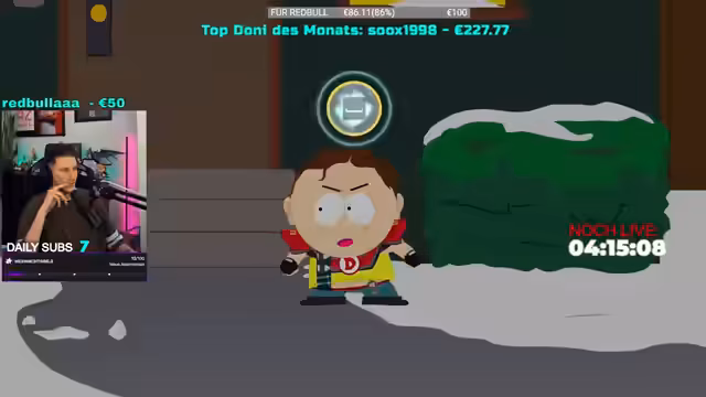 14:23:42Nach einer Runde wird die Idee aufgeworfen, South Park zu spielen, und der Streamer äußert deutlich, dass dies eine 'geile' und 'gute Idee' wäre. Er bestätigt, dass er noch einen South Park Titel besitzt, und fragt aktiv nach der Meinung des Teams und der Zuschauer. Dieser Abschnitt verdeutlicht die flexible und spontane Planung von Spielinhalten während des Streams, wobei der Fokus auf unterhaltsamen und gemeinsamen Aktivitäten liegt. Die Erwähnung erfolgt im Kontext einer kurzen Pause zwischen Runden, was die Bereitschaft zu einem Wechsel des Spielgenres zeigt.