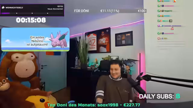 15:15:31Nach einer missglückten Attacke auf einen Riesenfeind wird das Spielgeschehen kurz unterbrochen, um über persönliche Entwicklung zu sprechen. Der Streamer vergleicht seine frühere Minecraft-geprägte Streamer-Persönlichkeit mit seinem heutigen, authentischeren Selbst. Er betont, dass wahre Erwachsenheit nicht in steifer Präsentation liegt, sondern in situationsangemessenem Handeln und der Beibehaltung von Leidenschaft – auch für Gaming jenseits von Altersklischees.
