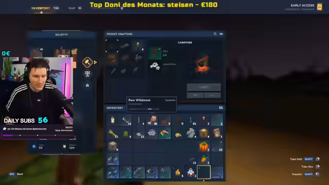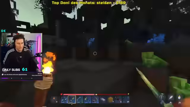 01:30:32In Hytale erkundet Nilo die Welt, kämpft gegen aggressive Tiere und sammelt Ressourcen. Er interagiert stark mit den Zuschauern, indem er ihre Namen in den Chat liest und sich für ihre Unterstützung, insbesondere für Sub-Gifte, bedankt. Der Streamer wirkt trotz seiner persönlichen Probleme wertschätzend und versucht, die Stimmung durch das chaotische Gameplay und seine Kommentare aufzulockern.