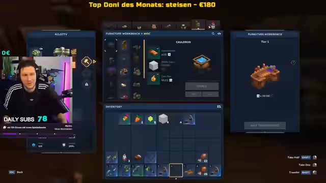 05:40:40Die ersten Minuten des Streams sind geprägt von der Untersuchung von Spielmechaniken und der Suche nach Crafting-Rezepten. Der Streamer erkundert Begriffe wie 'Nekromant' und 'Bodo-Bär' in Bezug auf das Spiel. Es folgt eine Phase des Craftings, in der er nach Zutaten für diverse Tränke, unter anderem Tierverwandlungstränke wie 'Frog Morphing', 'Pigeon Morphing' und 'Mouse Morphing', sucht. Gleichzeitig wird die Suche nach einer Werkbank und einem Ofen intensiviert, da er essentielle Materialien wie 'Steingold' und 'Ländernknochen' benötigt, um seine Ausrüstung zu verbessern.