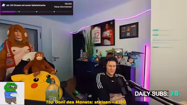 Aufgrund einer persönlichen Krise und schlechter Nachrichten ruft ein Streamer die Community zur Hilfe. Um die Existenz des Streams zu sichern, wird ein Sub-Ziel von 350 Abonnements festgelegt. Wird es erreicht, soll eine 12-Stream-Session mit von der Community gewähltem Spiel folgen.