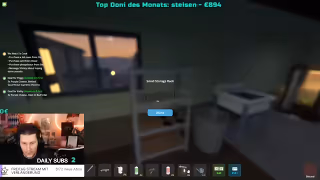 00:05:52Der Streamer begrüßt seine Zuschauer, insbesondere seine "Drogendealer Freunde", und kommentiert den gestrigen Stream als einen "guten Progress-Tag" mit einem spontanen 12-Stunden-Stream, den er als "geisteskrank" und "schwer gestört" bezeichnet. Er erklärt seine heutige Verspätung mit der mangelnden Pünktlichkeit des Chats am Vortag. Er grüßt die Zuschauer, erwähnt Anime-Empfehlungen wie Death Note und bedankt sich bei denen, die ihn auf TikTok unterstützen. Er erwähnt auch Probleme mit einer Flaschenpostbestellung, die nun zwischen 17:51 Uhr und 20:51 Uhr ankommen soll. Des Weiteren spricht er über sein körperliches und psychisches Befinden, wobei er körperlich fit, aber psychisch belastet sei. Er erwähnt, dass es später Fisch und Kartoffelpüree geben wird und er eine Abendroutine entwickelt hat, in der er sich die Geistes anschaut. Er lobt das Spiel, das er gestern gespielt hat, als jeden Cent wert und kündigt an, dass er heute definitiv wieder reinspielen wird, da es viele Lacher verursacht und ein Masterpiece ist. Er betont, dass das Spiel detailliert und unterhaltsam ist, mit der Möglichkeit, Drogen zu mixen und zu verkaufen.