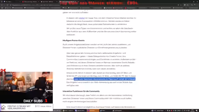 Organisation des Streams und Ankündigungen