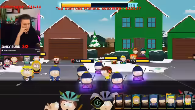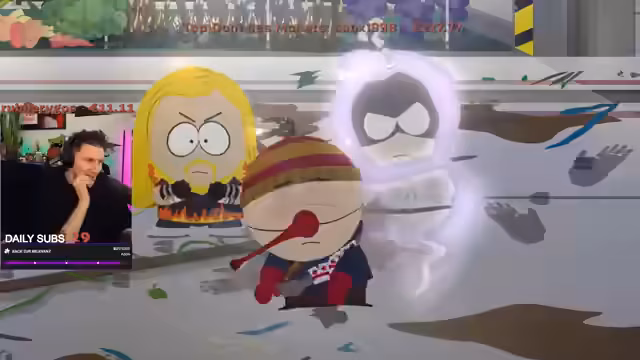 02:46:58Der Streamer spielt das Finale des South Park-Spiels. Die Handlung ist bizarre und grotesk, die Charaktere müssen eine Entscheidung treffen, wer von den Eltern sterben muss, um DNA-Proben für einen Klon zu erhalten. Nachdem die Entscheidung gefallen ist, wird der Endbosskampf eingeleitet, der gegen einen genetisch mutierten Superhelden namens 'Mysterio' geführt wird. Der Kampf ist hektisch und erfordert taktisches Heilen, Buffen und Angriffe. Das Stream-Team, vertreten durch Charaktere wie Tweak und Kelly, muss einen langen, anstrengenden Kampf bestehen, um den Boss zu besiegen.