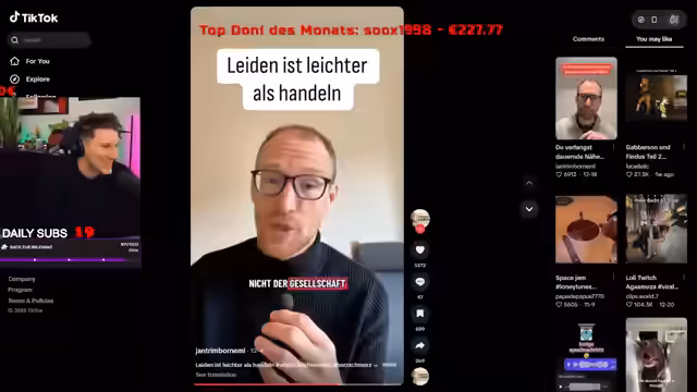 00:57:53Der Streamer schildert seine finanzielle Unsicherheit und die existenziellen Ängste, die damit verbunden sind. Er betont, dass er trotz seines Einkommens keine nennenswerten Ersparnisse habe und im Falle eines Bannes oder einer längeren Erkrankung direkt auf staatliche Unterstützung angewiesen wäre. Diese fehlende finanzielle Absicherung bereitet ihm große Sorgen, da er jeden Monat hohe Steuern bezahlt, aber keine Sicherheitsnetze hat. Er beschreibt, wie sehr ihn die Angst treibt, dass sein gesamtes, jahrzehntelanges Streaming-Engagement im Nu zusammenbrechen könnte und er direkt auf der Straße landen würde.