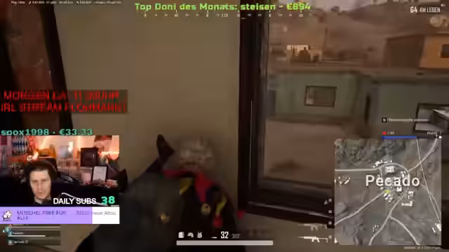 05:32:39Der Stream beginnt mit einem lockeren, teils abgehackten Gespräch über alltägliche und ungewöhnliche Befindlichkeiten wie 'Druck auf dem Darm'. Es folgt ein Abstieg in eine chaotische Sequenz eines Spiels, vermutlich Apex Legends, gekennzeichnet durch strategische Markierungen, das Bauen von Granaten und das Jagen von Gegnern in einer dynamischen Zone. Der Streamer interagiert intensiv mit seinem Mitspieler Taktik,坐标位置 und bittet um Unterstützung während der Kämpfe, was zu einem spannungsgeladenen Spielverlauf mit mehreren K.O.-Situationen und Loot-Suchen führt.