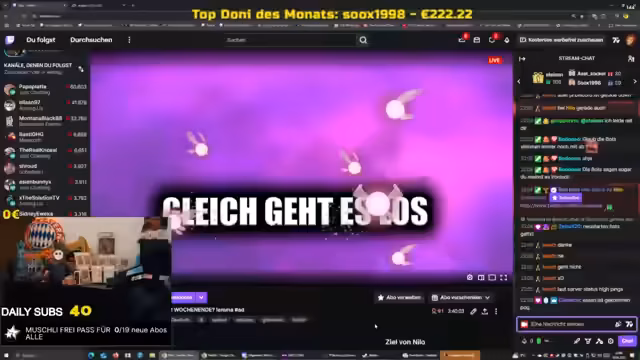 00:32:39Ein zentrales Thema ist das geplante Wochenende und die damit verbundenen Ziele. Der Streamer möchte am Samstag und Sonntag einen Lang-Stream veranstalten, was von der Erreichung eines bestimmten Sub-Ziels abhängt. Es fehlen noch einige Subs, bis dieses Ziel erreicht ist. Falls das Ziel nicht erfüllt wird, wird er stattdessen einen normalen Stream machen. Er gibt einen Zeitplan vor und kündigt an, auch in die Nacht hinein zu streamen, wenn das Ziel erreicht wird.
