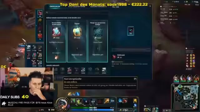 00:36:47Der Streamer widmet sich dem Spiel Teamfight Tactics und diskutiert seine Strategie. Er betont die Wichtigkeit von Synergien und gemeinsamen Entscheidungen im Team, um erfolgreich zu sein. Er spricht über den Bau seiner Kombination, die vollständige Bank und den Versuch, durch kontinuierliches Pushen und Item-Management in dem Spiel voranzukommen. Er kommentiert sein Spielgeschehen und plant seine Züge sehr strategisch.