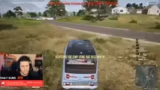 03:30:47Das Geschehen in Survival Evolved wird durch einen virtuellen Unfall unterbrochen, als der Streamer mit einem Fahrzeug einen Buckel rammt und sich überschlägt. Er muss sich heilen und sein Fahrzeug wird schwer beschädigt. Anschließend fährt das Team zu einem neuen Ort, wird aber wieder von Gegnern angegriffen. Die unkoordinierte Aktion und der Stress in der Kriegssituation führen zu weiteren Verlusten und panischen Reaktionen, wie das versehentliche Anfahren von Teamkollegen.