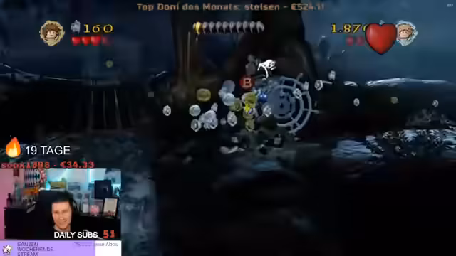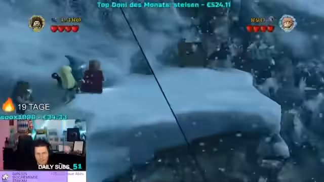 06:03:14Der Streamer und ein Mitspieler, Darko, spielen zusammen den Koop-Modus von 'Lego Herr der Ringe'. Ihr Ziel ist es, gemeinsam die Story des Spiels durchzuspielen. Die Kommunikation und das Zusammenspiel gestalten sich jedoch holprig; sie haben Schwierigkeiten, sich auf eine Strategie zu einigen, und führen einen ständig zänkischen, humorvollen Dialog. Sie scheitern mehrmals an den gleichen Stellen, insbesondere im Umgang mit den Charakter-Fähigkeiten und der Steuerung. Trotz des Spielfehlers und der gegenseitigen Schuldzuweisungen bleiben sie humorvoll und spielen die Szene immer wieder neu, bis sie schließlich vorankommen.