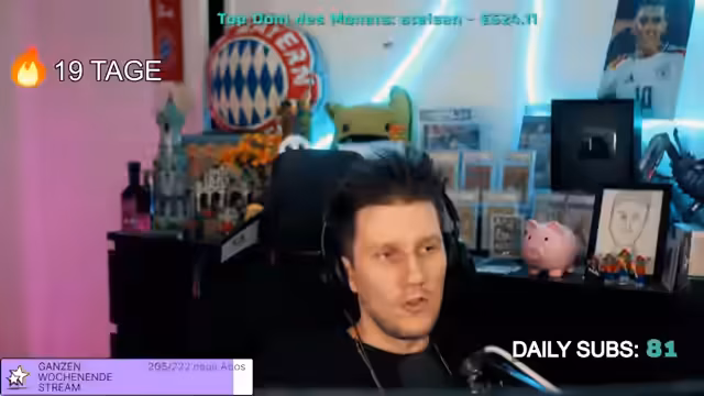 09:38:34Axel wird für 5 zusätzliche Subs gedankt, und es wird spekuliert, ob dies mit einer Muschel zu tun hat. Es wird festgestellt, dass das Sub-Ziel bereits am Mittwoch erreicht wurde, was unerwartet war. Es wird überlegt, ob eine Challenge Center eingerichtet werden soll. Es wird überlegt, was der Plan für den Rest des Streams ist. Es wird überlegt, ob man einschlafen soll. Es wird überlegt, ob man existieren soll. Es wird überlegt, ob man decken soll. Es wird überlegt, ob man einkaufen gehen soll. Es wird überlegt, was der Plan für den Rest des Streams ist. Es wird überlegt, ob man einschlafen soll. Es wird überlegt, ob man existieren soll. Es wird überlegt, ob man decken soll. Es wird überlegt, ob man einkaufen gehen soll. Es wird überlegt, was der Plan für den Rest des Streams ist. Es wird überlegt, ob man einschlafen soll. Es wird überlegt, ob man existieren soll. Es wird überlegt, ob man decken soll. Es wird überlegt, ob man einkaufen gehen soll.