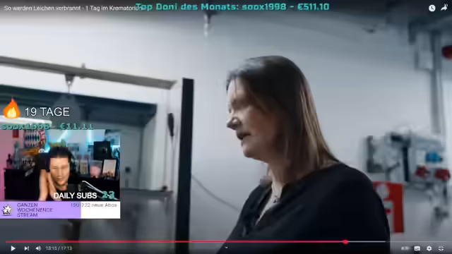 01:09:24Es wird erörtert, dass sich in Deutschland etwa 80 Prozent der Menschen für eine Feuerbestattung entscheiden, was regionale Unterschiede aufweist. Dies liegt vor allem daran, dass es mehr Möglichkeiten gibt, wie z.B. die Bestattung im Wald oder auf See, und dass weniger Grabpflege erforderlich ist. Eine Urnenbestattung kann günstiger sein, insbesondere wenn ein pflegefreies Grab auf dem Friedhof gewählt wird. Die Arbeit in einem Krematorium verändert das Verhältnis zum Tod, indem sie Dankbarkeit für das eigene Leben und die Gesundheit der Familie weckt. Obwohl der Tod allgegenwärtig ist, wird er nicht als bedrückend empfunden, und die Särge wirken abstrakt. Für die Mitarbeiter ist es letztendlich ein Job wie jeder andere. Der Streamer teilt seine positiven Erfahrungen mit dem Besuch eines Krematoriums und betont, dass es wichtig ist, sich mit dem Thema Tod auseinanderzusetzen, da es ein Begleiter des Lebens ist. Er selbst könnte jedoch nicht in diesem Bereich arbeiten, da er beim Anblick des Videos bereits zu schwitzen begann.