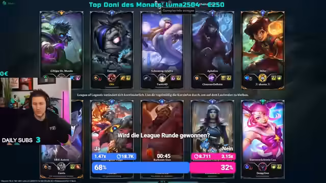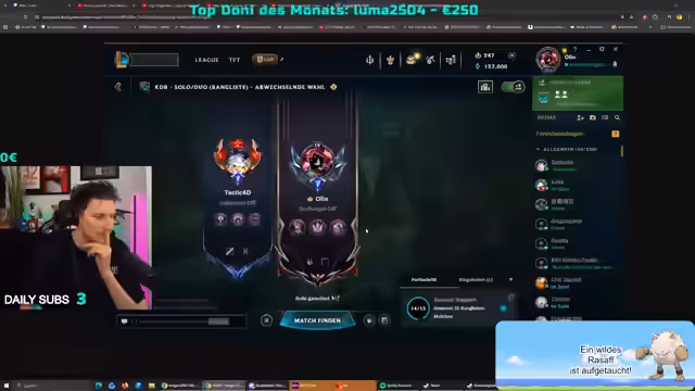 04:35:41Nach drei erfolgreichen Runden League of Legends mit Warwick und Lux, die mit einem kompetitiven Team zusammen gespielt wurden, wechselte der Streamer zu einem 2v2 gegen einen Mitspieler namens Taktik. Das Spiel wurde jedoch von technischen Problemen und Controller-Fehlfunktionen überschattet. Es kam wiederholt zu Lobby-Einladungsfehlern, schwarzen Bildschirmen und blockierten Eingaben, was das Spielgeschehen mehrmals unterbrach und die Koordination erschwerte. Der Streamer bemühte sich, die Fehler zu beheben, und konnte letztlich eine funktionierende Lobby starten, um das Match fortzusetzen.