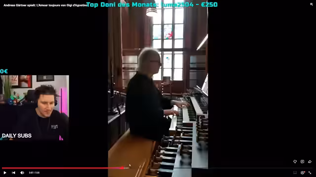 00:37:18Nach der Dokumentation wendet sich der Fokus der Orgelmusik zu. Der Streamer stellt fest, dass durch den viralen Orgel-Beat viele Lieder neu in Orgel-Versionen interpretiert werden, was als „Orgel-Jahr“ bezeichnet wird. Er selbst ist von der kraftvollen und feierlichen Wirkung der Orgel überzeugt, besonders wenn sie in einem Kirchenraum gespielt wird. Er hebt die einzigartige Atmosphäre hervor, die durch den Hall und die Klangfülle entsteht und vergleicht sie mit der Königsklasse der Musikinstrumente. Darüber hinaus wird die Verbindung von Orgel-Musik mit anderen Genres wie Mittelalter- oder Star-Wars-Themen als spannend empfunden.
