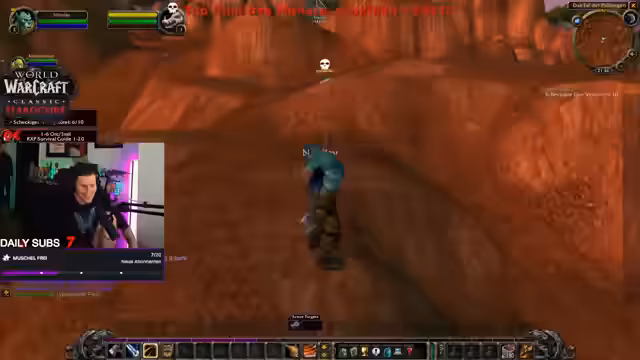 03:41:52Die Spieler fordern sich gegenseitig zu Duellen heraus, auch 'bis zum Tod'. Ein Spieler stirbt erneut in einem Duell, was zu weiteren humorvollen Kommentaren führt. Die Gruppe kämpft weiterhin gegen Gegner und versucht, ihre Laufwege zu koordinieren, um nicht zu sterben. Der Streamer äußert den Wunsch nach Addons, um seinen HP-Balken zu verschieben. Es kommt zu weiteren Duellen und Neckereien, wobei ein Spieler als 'feiges Hühnchen' bezeichnet wird, weil er ein Duell ablehnt. Die Spieler diskutieren über die Schwierigkeit des Hardcore-Modus und die Notwendigkeit, vorsichtig zu sein. Ein Spieler stirbt erneut, diesmal durch ein gespawntes Viech während eines Duells. Die Gruppe beschließt, gemeinsam weiterzuspielen und zu versuchen, Level 60 zu erreichen. Es wird über gute Ork-Namen gesprochen, und der Streamer kehrt als 'neuer Ork' ins Spiel zurück.
