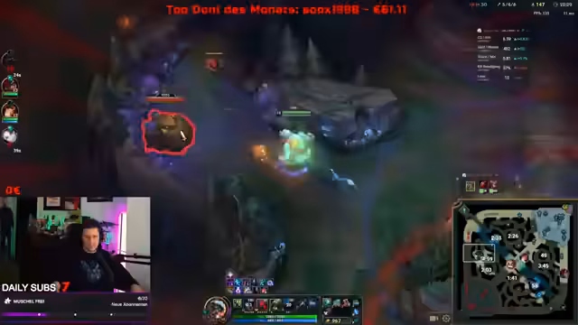 02:18:16Der Streamer loggt sich in Fortnite ein und bemerkt, wie viel Geld er in alte Skins investiert hat, was er im Nachhinein bereut. Er wünscht sich, er hätte das Geld stattdessen in Karten investiert. Er stellt fest, dass er das Spiel lange nicht gespielt hat, wahrscheinlich seit über einem Jahr. Er ist überrascht von den neuen Features, wie der Möglichkeit, Homer Simpson als Skin zu spielen, und bemerkt den Cartoon-Stil der neuen Map, die an die Simpsons erinnert. Er versucht, mit seinen Freunden Pascal und Darko eine Runde zu spielen, wobei es zu technischen Schwierigkeiten und Verwirrung kommt, da Pascal anscheinend im Teamspeak gemutet ist oder nicht reagiert. Trotz der anfänglichen Probleme und der langen Ladezeiten sind sie entschlossen, eine Runde Battle Royale zu starten. Er erwähnt erneut seine umfangreiche Skin-Sammlung und die damit verbundenen Ausgaben, die er als 'Trottel' bezeichnet. Die Gruppe entscheidet sich schließlich, ohne Musik zu spielen, um Copyright-Probleme zu vermeiden, was auch für zukünftige Clips von Vorteil wäre, wenn er ein Zwei-PC-Setup hätte.
