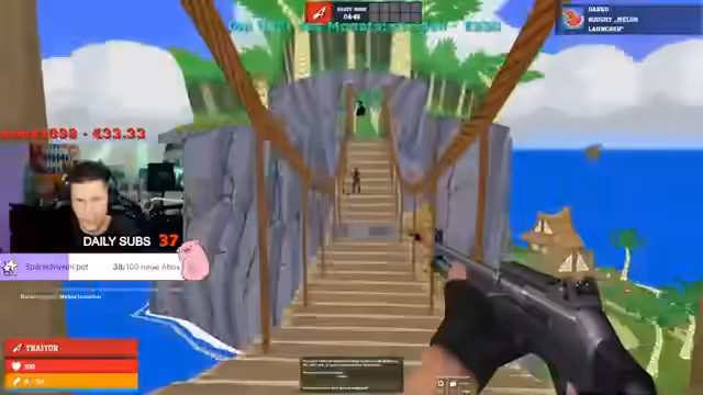 06:00:39Der Stream beginnt mit einem chaotischen Spielverlauf, in dem es zu mehreren unabsichtlichen Tötungen kommt. Ein Mitspieler namens Klee schießt versehentlich den Streamer an, was zu einer hitzigen Debatte führt. Später werden weitere Mitspieller wie Cebu und Mi getötet, wobei der Streamer selbst ebenfalls ums Überleben kämpft und auf andere schießt. Die Stimmung ist geprägt von Verwirrung und Panik, als plötzlich Darko auftaucht und den Streamer angreift.