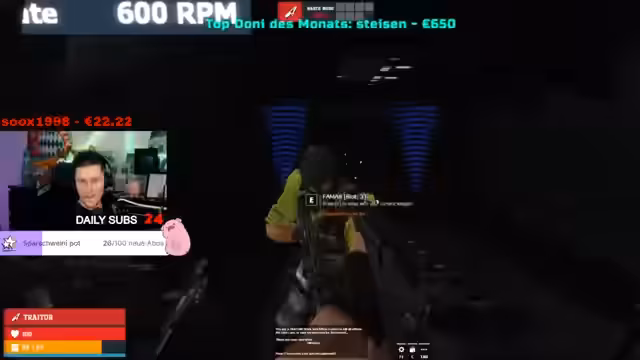 04:38:45Es wird sich bei Fanti für eine 10er Sub-Bombe bedankt. Jeder Sub, der noch rausgehauen wird, geht in die nächste Mord-Austragung. Es wird kurz überlegt, welche Ausrüstung am besten in einer Healing Station zu holen ist. Es wird festgestellt, dass der Körper eines Spielers (Taktik) verschwunden ist und nicht identifiziert werden kann. Es wird darüber diskutiert, dass man nicht jede Runde für 10 Subs jemanden töten wird, sondern erst ab 20 Subs. Es wird ein Re-Sub erwähnt und sich dafür bedankt. Es wird sich bei Fanti nochmals für die 10 Subs bedankt und angekündigt, dass die nächste Auswahl nach oben gepusht werden muss. Es wird erwähnt, dass alles, was in der nächsten Stunde passiert, am 15. berücksichtigt wird. Es wird über eine Situation im Spiel gesprochen, in der ein Spieler einen anderen in den Kopf geschossen hat und ein anderer den anderen umgebracht hat.