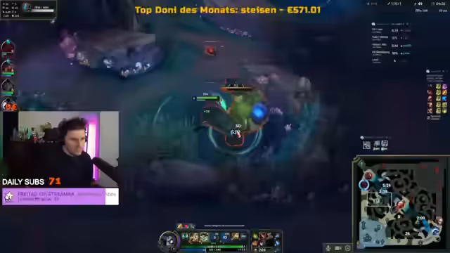 02:49:18Das League of Legends-Spiel beginnt mit Diskussionen über Champion-Picks und Banns, besonders die Wahl von Amomo gegen Warwick wird kritisch hinterfragt. Der Streamer spielt Ornn und kritisiert die geringe Flexibilität in den Picks. Die Midlane und Jungle-Phase zeigen hohes Risiko, mit engen Überlebenssituationen und Fehlern im Teamkommunikation. Ein später Drake-Fight wird verpasst, was zu Frustration führt.