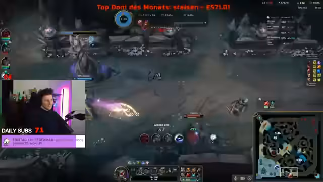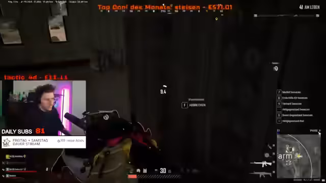 04:17:03Das Gameplay konzentriert sich auf taktische Manöver und Positionswechsel. Der Streamer gibt Anweisungen an sein Team, wie er an eine bestimmte Position gelangen kann, und markiert Ziele für seine Mitspieler. Die Kommunikation ist geprägt von kurzen, direkten Befehlen und dem Austausch von Informationen über die Position und Aktionen des gegnerischen Teams. Die Szene zeigt den Stress und die Dynamik eines laufenden Spiels, in dem schnelle Entscheidungen gefällt werden müssen.