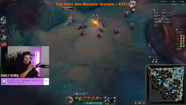 03:12:35Später im League-Spiel ist der Druck hoch. Der Streamer nennt Vladimir und Xion als Hauptprobleme, da sie zu viel Druck aufboten und zu wenig Schaden von den Gegnern genommen wurde. Trotzdem wird der Kampf um den Drake genommen, was in einem klaren Sieg für das gegnerische Team endet. Das Spiel wird verloren, der Streamer kritisiert die fehlende AD-Damage und den Teamplay.