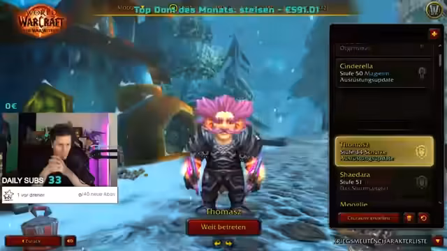 04:53:35Nach einem kurzen Seitenstrick über technische Probleme wird der Fokus auf eine beeindruckende Statistik gelenkt. Der Streamer gibt an, bereits seit 18 bis 19 Jahren World of Warcraft zu spielen. Er schätzt, dass er mit einem einzelnen Charakter über 10.000 Stunden Spielzeit hat und insgesamt einen enormen Teil seines Lebens in dem Spiel verbracht hat. Er betont, dass er ohne dieses Spiel und die daraus resultierende Online-Freundschaften ein anderer Mensch wäre und sein Leben grundlegend anders verlaufen wäre.
