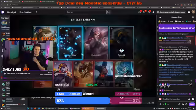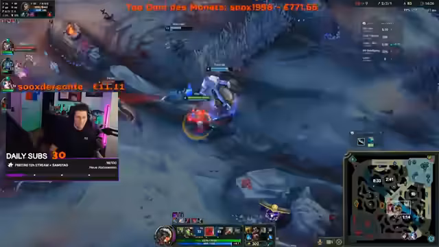 02:41:05Das Spiel neigt sich dem Ende zu, und die Situation wird als hoffnungslos beschrieben. Die Schadenswerte der gegnerischen Jinx werden als extrem hoch eingestuft, während der eigene ADC erheblich Farm zurückliegt. Neben dem Gameplay wird auch ein interaktives Element für den Stream angekündigt. Der Streamer erwähnt eine Aktion mit Twitch, die Subs betreffen, und erkundigt sich nach den Konditionen und der Möglichkeit, diese zu nutzen, was die Community-Interaktion stärkt.
