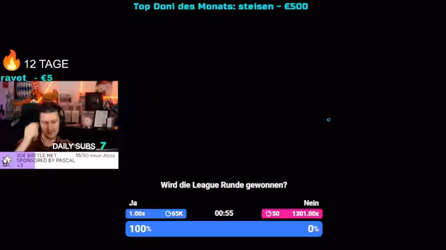 00:55:10Der Streamer ärgert sich darüber, bei dem Anime „Solo Leveling“ versehentlich gespoilert worden zu sein, hat sich aber bewusst weiter spoilern lassen, um ganz die Story zu kennen. Er warnt die Zuschauer vor Spoilern im Chat und kündigt an, nichts preiszugeben. Nebenbei kommentiert er das aktuelle Fußballspiel von Bayern München gegen Leverkusen, das zu diesem Zeitpunkt torlos und ausgeglichen verläuft.