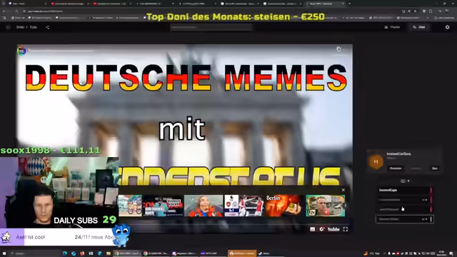 00:24:02Der Streamer ist baff über den extrem hohen Support von gestern, den er als 'Abriss' bezeichnet. Er ist der Meinung, dass der Support von heute nicht an den gestrigen Rekord heranreichen könne, da dies statistisch unmöglich sei. Trotzdem erhält er weitere Spenden, u.a. von 'Pazzy' und 'Pascal', was er kommentiert und die Spender namentlich würdigt. Die Stimmung ist geprägt von Überraschung und Dankbarkeit.