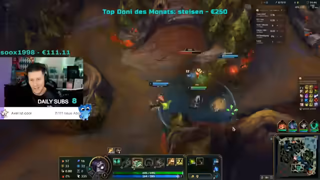 02:20:13Der Stream beginnt mit hochspannenden, aber auch frustrierenden League of Legends-Spielszenen. Der Kommentator beschreibt aggressive Aktionen, ständige Tode und verpasste Chancen. Er erwähnt wiederholt Dwayne, was sich auf einen Spieler oder Champ beziehen könnte. Der Fokus liegt auf strategischen Fehlern, wie dem Verlieren von Teamkämpfen trotz guter Anfangsposition, und der eigenen Taktik, die als zu experimentell eingestuft wird. Der allgemeine Tenor ist gekennzeichnet durch laute, emotionale Reaktionen auf Spielereignisse und ständige Anleitungen an das Team.