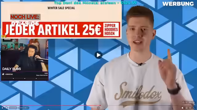 10:09:09Nilo plant einen Shopping-Stream, da seine Hosen an derselben Stelle ein Loch haben. Er spekuliert, warum die Taschen kaputt gehen, und vermutet es liege an seinem Lebensstil. Er lässt die Chat-Community raten, wo seine Hosen herkommen, und verspricht, das Ende im Stream zu zeigen. Das Loch liegt an der Innenseite der Hosentasche.