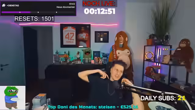 04:20:58Nach einem ereignisreichen Einkauf und Postbesuch erreicht der Streamer seine Wohnung und begrüßt seine Zuschauer. Er schildert den stressigen Start in den Tag, der von einem katastrophalen Montags-Einkauf geprägt war. Nachdem er sich kurz mit einem Snack und einem Schluck Wasser gesammelt hat, beginnt er mit dem Stream und bittet den Chat um eine Reaktion, um in den Modus zu kommen.