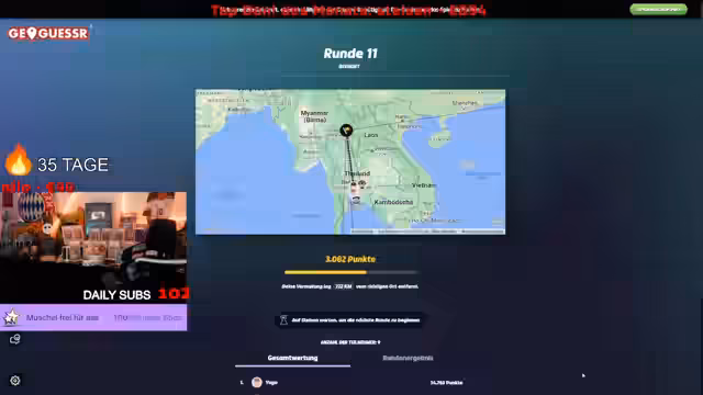 03:30:14Der Streamer beschäftigt sich mit der Bestellung von Essen und diskutiert verschiedene Optionen wie McDonald's, vegane Nuggets und Pommes. Gleichzeitig startet er eine GeoGuessr-Runde, bei der Teilnehmer versuchen, Orte anhand von Bildern zu identifizieren. Es gibt eine lockere, interaktive Atmosphäre, bei der humorvolle Anekdoten und persönliche Einblicke geteilt werden. Der Streamer bittet die Zuschauer, an den Spielen teilzunehmen und die Plätze im TeamSpeak zu füllen.