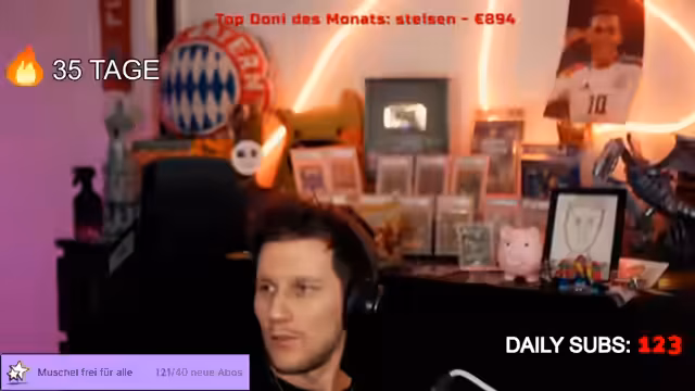 00:24:37Der Streamer erklärt den Titel seines Streams mit einem 35-tägigen Support-Streak, ähnlich wie bei Snapchat-Flammen. Er betont, dass er seit 35 Tagen überdurchschnittlich viel Unterstützung erhält, mit Beispielen wie 100.000 Bits auf einmal. Er erwähnt, dass er Anfang Februar nur wenige Subs hatte und das Gag wurde nun zu einer ernsten Angelegenheit, die ihm viel bedeutet.