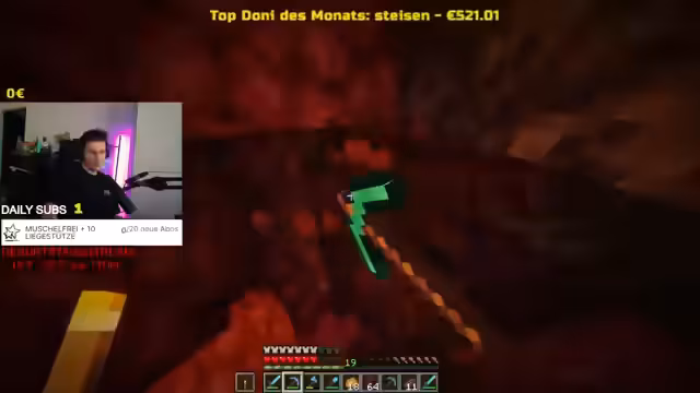 01:23:50Der Streamer ist auf der Suche nach Netherit und Quarz im Nether von Minecraft. Er erkundet das gefährliche Gelände, versucht, Chunk-Grenzen zu finden und nutzt eine Spitzhacke mit Effizienz-Verzauberung, was das Graben erheblich beschleunigt. Es ist ein gefährlicher Prozess, bei dem er ständig Lava-Seen ausweichen muss und um den Verlust seiner wertvollen Beute fürchten muss.