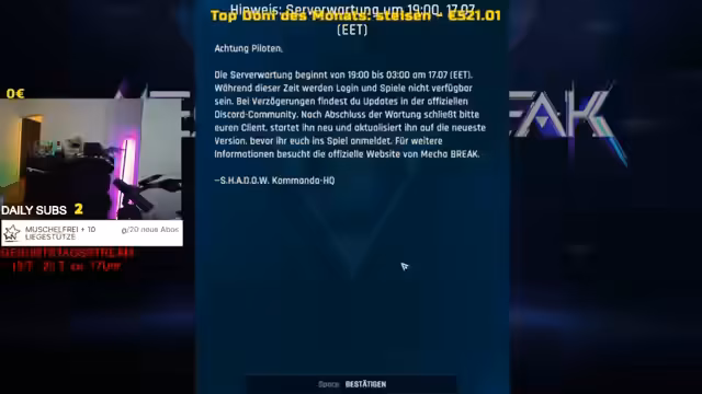 02:31:21Aufgrund von Verärgerung über den Minecraft-Server und die niedrigen Zuschauerzahlen wechselt der Streamer zu dem Spiel 'Mecha-Break'. Er stellt die Werbung für das Spiel vor, einen Mecha-Shooter, in dem man Teams für Beutezüge bildet und eigene Roboter anpassen kann. Er erklärt, dass er den Deal mit den Werbetreibenden nicht abbrechen kann, da dies den Vertrag gefährden würde.