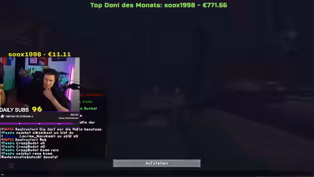 03:40:04Der Streamer reflektiert über einen anstrengenden Montag, an dem die geplante Besetzung von vier Leuten auf nur zwei reduziert war, da einer früh ging und ein anderer gar nicht erst erschien. Dies führte zu einer erhöhten Arbeitslast. Parallel dazu wird eine ernste Situation im Team besprochen: Ein Kollege namens Banner hat sich die Leiste gebrochen, genauer gesagt einen offenen Bruch, bei dem ein Stück Darm austrat. Die medizinische Erklärung, dass das Bindegewebe reißen kann und der Darm sich dann herausschiebt, wird gegeben. Es wird erläutert, dass Ärzte dies operativ beheben, indem ein Bindegewebe eingesetzt und eingenäht wird. Diese Verletzung bedeutet, dass Banner für einige Zeit ausfallen wird. Der Streamer fragt scherzhaft, ob jemand einspringen könnte, und es wird über die Fahrtwege und das Wetter gesprochen, das das Fahren zusätzlich erschwert. Die Schichtarbeit von David, einem anderen Teammitglied, wird erwähnt, und es kommt zur Sprache, dass es kürzlich einen Vorfall mit David und einem Club gab, bei dem es zu einem „Bombardement“ kam, das Sachschäden in Millionenhöhe verursachte, aber keine Toten forderte. Es stellt sich heraus, dass der Club David gehört und der Vorfall durch Mihien verursacht wurde, der als „Ratte“ bezeichnet wird.