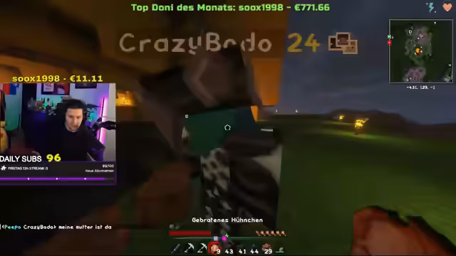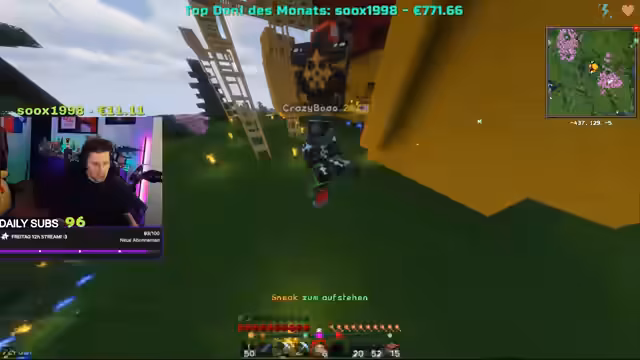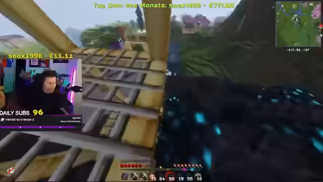 03:55:07Im Minecraft-Spiel hat der Streamer einen kleinen Shop gebaut, in dem alltägliche Gegenstände wie Herzen, Rüstungen und andere Dinge gekauft werden können. Er nimmt auch Spezialanfragen entgegen, beispielsweise für das Farmen bestimmter Items oder für einen 'Schrankdienst'. Letzterer Begriff führt zu einer humorvollen Diskussion, da einige Zuschauer den Begriff nicht kennen und er als Äquivalent zum 'Busfahren' in der Schule beschrieben wird – also als eine Art Hilfsdienst. Es wird auch über die Verwendung von Gerüsten im Spiel gesprochen, die das Bauen erleichtern, indem sie das Platzieren von Blöcken in die Höhe ermöglichen, ohne selbst aufsteigen zu müssen. Diese Gerüste erweisen sich als äußerst nützlich und machen das Bauen deutlich effizienter, insbesondere bei größeren Projekten, die eine erhebliche vertikale Ausdehnung erfordern.