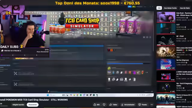00:21:35Der Streamer erinnert sich an ein früheres Trading-Card-Spiel, das er mit seiner Community gespielt hat, und äußert den Wunsch, dieses Spiel erneut zu spielen, jedoch mit einem Pokémon-Mod. Er erklärt, dass er Pokémon-Karten ziehen möchte, ähnlich wie im TCG-Shop. Er fragt die Zuschauer, ob jemand Ahnung hat, wie man einen solchen Mod installiert, und betont seine Begeisterung für die Idee, Pokémon-Karten im Spiel zu öffnen. Die Diskussion dreht sich um die technische Umsetzung und die Möglichkeit, alte Zeiten wieder aufleben zu lassen, da das ursprüngliche Spiel viele Zuschauer angezogen hatte. Er bedankt sich auch bei einem Zuschauer für einen 14-monatigen Resub in Tier 3 und merkt an, dass das zweite Jahr des Abonnements begonnen hat.