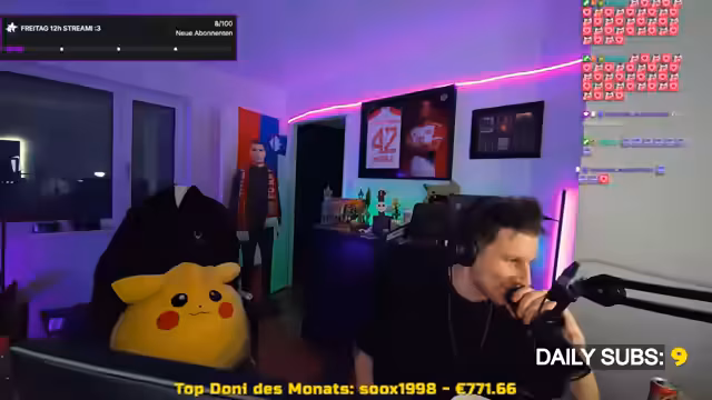 03:21:59Der Streamer spricht über Subscriber-Ziele und Herausforderungen, die er für seine Community plant. Bei Erreichen von 100 Subs möchte er eine spezielle Hose mit Scrunch-Design tragen, die seinen Po betont. Für 200 Subs würde er zusätzlich noch ein Top tragen. Er betont, dass diese Challenges eher humorvoll und unangenehm für ihn seien, als dass er sie ernst nehmen würde. Die Reaktionen im Chat sind unterschiedlich, wobei einige Zuschauer die Idee finden, während andere sie als unangemessen ablehnen. Der Streamer versucht, die Situation locker zu nehmen, zeigt aber auch Unbehagen bei dem Gedanken, diese Kleidung zu tragen.
