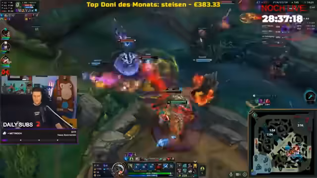 05:25:55Zu Beginn des Streamings spricht der Streamer über seine aktuellen privaten Pläne. Er befindet sich bei seiner Großmutter und plant, die gesamte Osterwoende, einschließlich Ostermontag, dort zu verbringen. Er berichtet auch von einer bevorstehenden Operation, bei der er sich die ersten drei Tage im Krankenhaus aufhalten muss, und erklärt, dass er danach nach Hause darf, aber körperlich schont werden muss. Sein Blutdruck soll niedrig gehalten und er darf nicht League of Legends spielen. Er erwähnt, dass ihm zu Hause nichts Süßes mehr übrig ist und seine Großmutter ihm stattdessen Nutella schicken soll.
