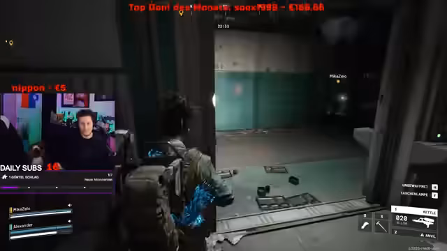 03:10:35Nilo und Mike spielen zusammen Arc Raiders und erleben dramatische Situationen. Sie erkunden Gebäude, bekämpfen KI-Gegner wie Bombardier und Krokodil, und überleben knapp einen Angriff. Dabei offenbart sich das risikoreiche PvP-Erlebnis: Ein scheinbar freundlicher Spieler schießt Nilo in den Rücken, nachdem er zuvor mehrfach beteuert hat, nicht zu schießen. Trotz solcher Vorfälle lobt Nilo das dynamische Spielgefühl. Die Session endet mit einer Flucht über eine Seilrutsche, die zu einer sicheren Zone führt.
