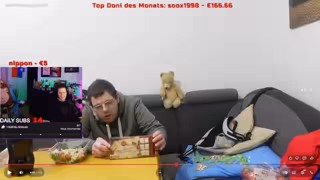 00:14:18Der Streamer erklärt den aktuellen Stand seines Wohnungsumbaus. Er war den ganzen Tag unterwegs, um Möbel bei Poco Domäne zu kaufen, darunter Badezimmermöbel und Küchenzeile. Es fehlte bisher an Stauraum und passender Einrichtung, teilweise aus Geiz und Faulheit. Die gekauften Möbel werden gerade von Taktik und Steißen aufgebaut. Der Streamer betont, dass dies auf freiwilliger Basis geschieht und nicht als Ausbeutung gemeint ist, während er selbst den Stream moderiert.