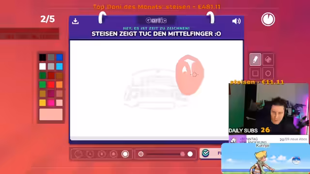 07:11:42Der Streamer schlägt Challenges vor, um die Community zu aktivieren. Für 10 Subs essen Rips und Darko eine Ekelbohne. Eine weitere Challenge wird zwischen Steisen und seinem Bruder ausgetragen, mit der Konsequenz, dass Steisen bei einer Niederlage die Erwartungen seiner Unterstützer enttäuscht. Die Zuschauer werden zur Abstimmung für die genauen Dimensionen des Berggerüsts aufgerufen.