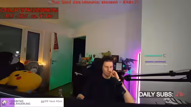 08:12:47Der Streamer äußert persönliche Sorgen und einen belastenden Monat. Er beschreibt die aktuelle Zeit als sehr schwierig und voller Ängste, ohne konkret zu werden. Er hofft, dass sein bevorstehender Geburtstag eine positive Wende bringt, fühlt sich aber durch äußere Faktoren wie Geburtstage, Sommer und andere Ereignisse zusätzlich belastet und überfordert. Die Stimmung im Stream ist von dieser persönlichen Verfassung geprägt und wirkt gedrückt.