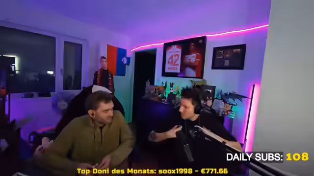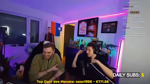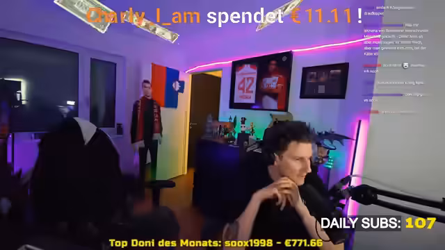 00:15:31Es wird über ein neues Feature von Twitch gesprochen, das es ermöglicht, 1000 Subs auf einmal zu verschenken, was als „1000er Sub-Bombe“ bezeichnet wird. Der Streamer zeigt sich überrascht und beeindruckt von dieser Möglichkeit, da dies eine enorme Summe Geld darstellt (etwa 4000 Euro). Es wird spekuliert, welche extreme Gegenleistung der Streamer für eine solche Spende erbringen müsste, da normale Aktionen wie Liegestütze als unzureichend angesehen werden. Ein Tattoo wird als zu viel empfunden. Die Diskussion dreht sich um die Realisierbarkeit und die Auswirkungen einer solchen Spende, wobei der Streamer seine Zweifel äußert, jemals eine solche Sub-Bombe zu erhalten, da dies eine außergewöhnliche Geste wäre. Er erinnert sich an frühere große Spenden, die ihn emotional überwältigt und sogar zu finanziellen Herausforderungen mit dem Finanzamt geführt hatten.
