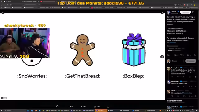 05:46:54Es wird über ein spezielles Sub-Angebot von 1000 Subs diskutiert, das Nilo selbst nicht sehen kann, aber bei anderen verfügbar ist. Es wird erwähnt, dass Twitch die maximale Anzahl an Subs, die man auf einmal verschenken kann, erhöht hat, sodass nun bis zu 200 Subs gleichzeitig vergeben werden können. Nilo betont, dass er für solche großen Spenden keine Gegenleistung erwartet, da dies die Grenze des 'Sellouts' überschreiten würde. Er plant, ein Alert für 6 Subs einzurichten, das als 'Willkommen im Lager' dienen soll, und überlegt, den dazugehörigen Clip noch zu bearbeiten, um unerwünschte Soundeffekte zu entfernen.